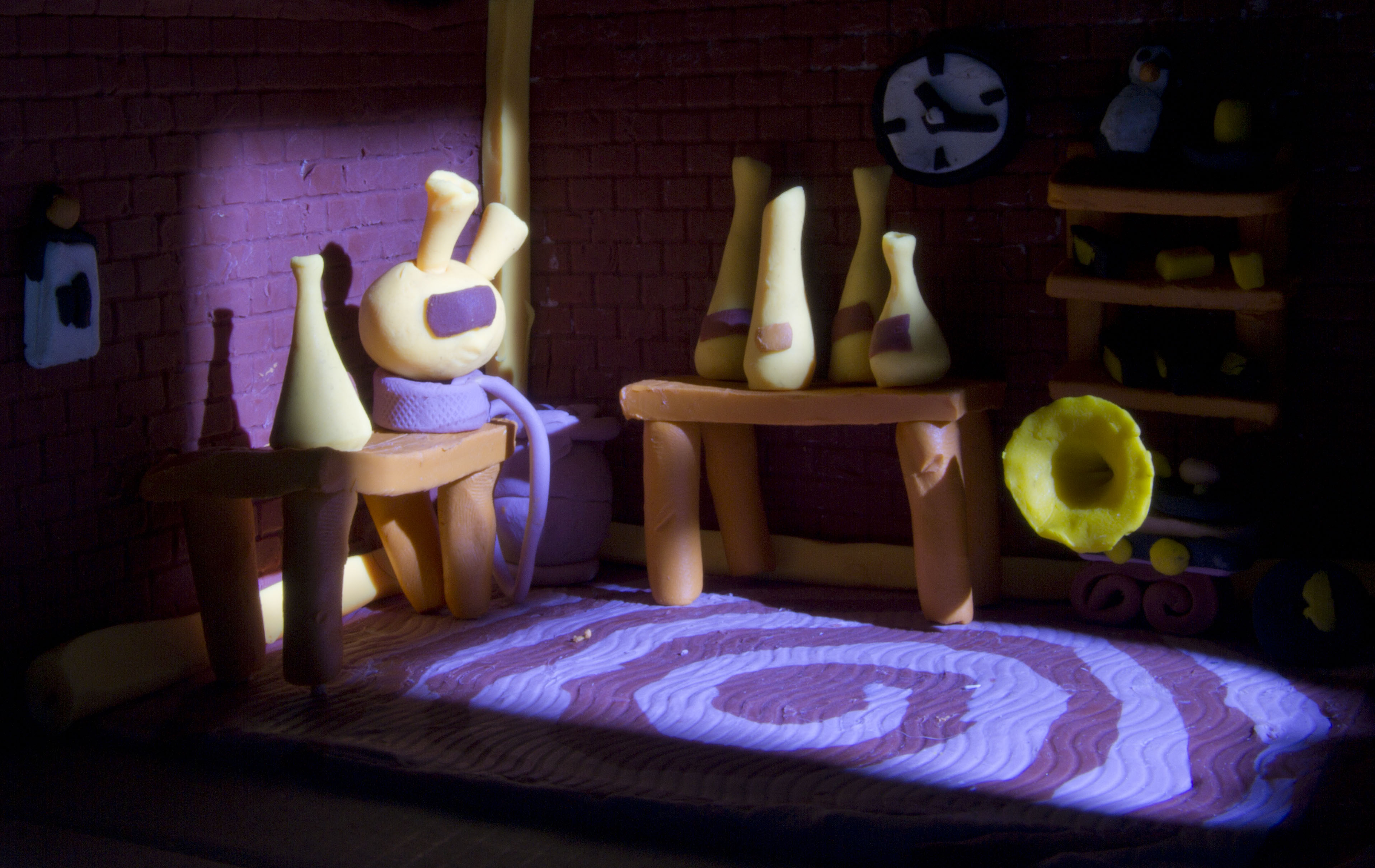 general test for new short movie. It is 10cm*15 cm small plastiline set. Tried to test some atmospheric and light effects . And Searching for general form and scale.