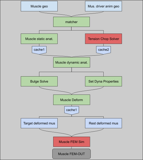 The MUSCLE & FLESH SETUP is a versatile toolset designed to create realistic flesh and muscle simulations. I started to develop it inside Maya ,and by time all cfx part is transfered to houdini. Tool combines dynamic muscle anatomy, FEM simulations, surface dynamics, skin sliding, and wrinkle simulations to deliver lifelike muscle and flesh motion.