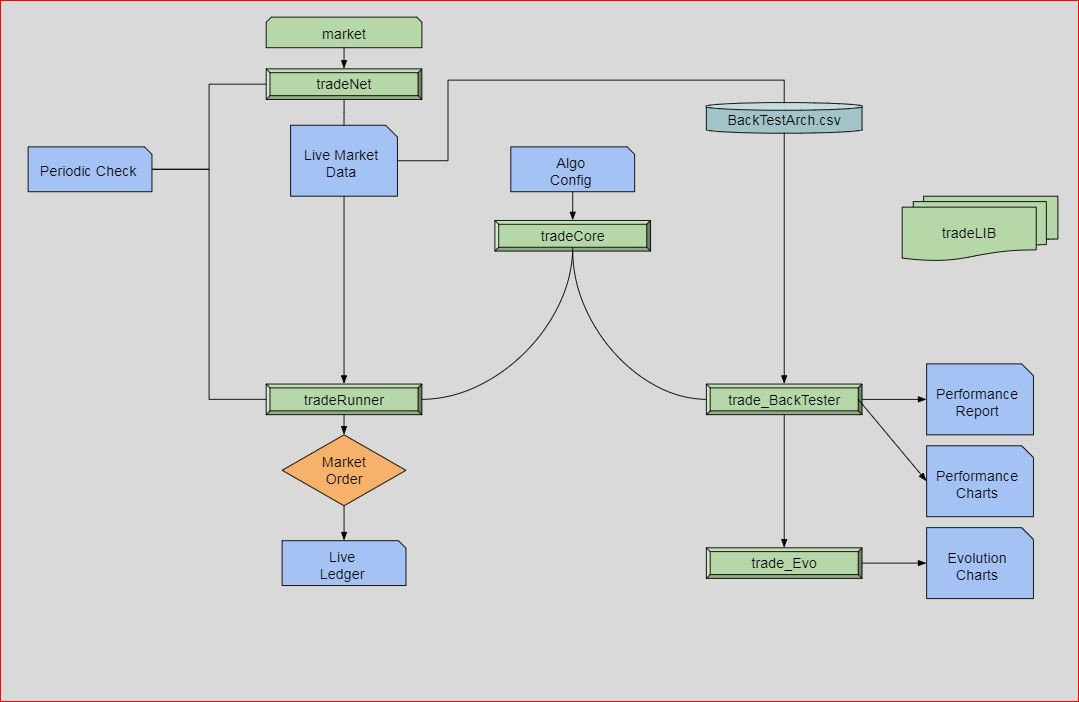 - tradeRunner: Executes tradeCore in real-time market conditions.
